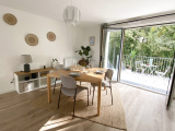 La salle à manger donne accès à un balcon-terrasse qui donne lui-même accès au jardin privatif.