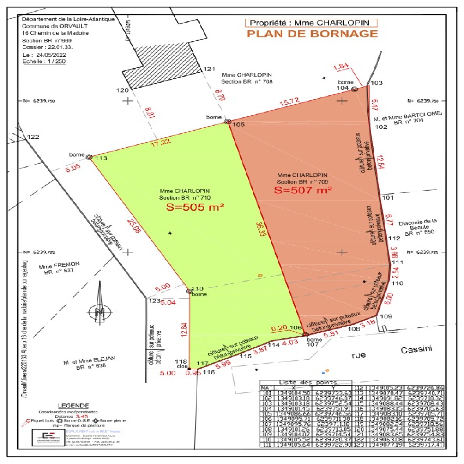 ORVAULT madoire, terrain à bâtir de 505 m2, borné, non viabilisé.