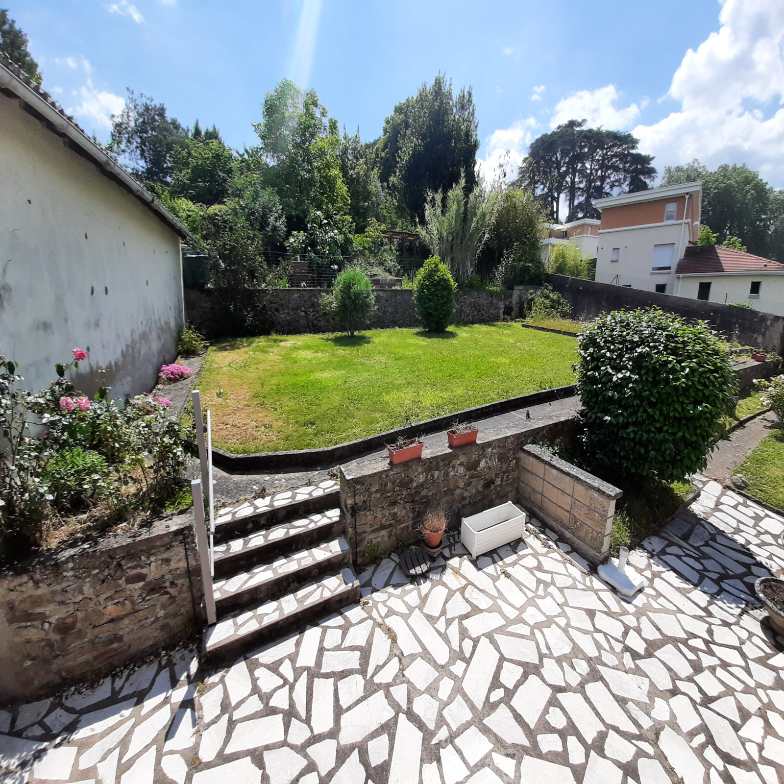 BOUGUENAIS BOURG Quai de la vallée ! Maison au calme avec vue dégagée ! Vous profiterez d'un rez de chaussée semi-enterré de 60 m2 comprenant garage, cave et atelier avec cheminée. Au premier niveau sur 80 m2 au total (63 m2 habitables), vous retrouverez entrée-dégagement, salon-séjour, cuisine aménagée et équipée, deux chambres, salle d'eau, WC séparé et une véranda chauffée et exposée plein SUD de 17 m2 ! En extérieur : terrasse, chalet bois, serre et jardin privatif clos ! Proximité immédiate de tous les services (transports, commerces, écoles) ! Maison saine et entretenue (prévoir travaux rafraichissement pour remise au goût du jour) !