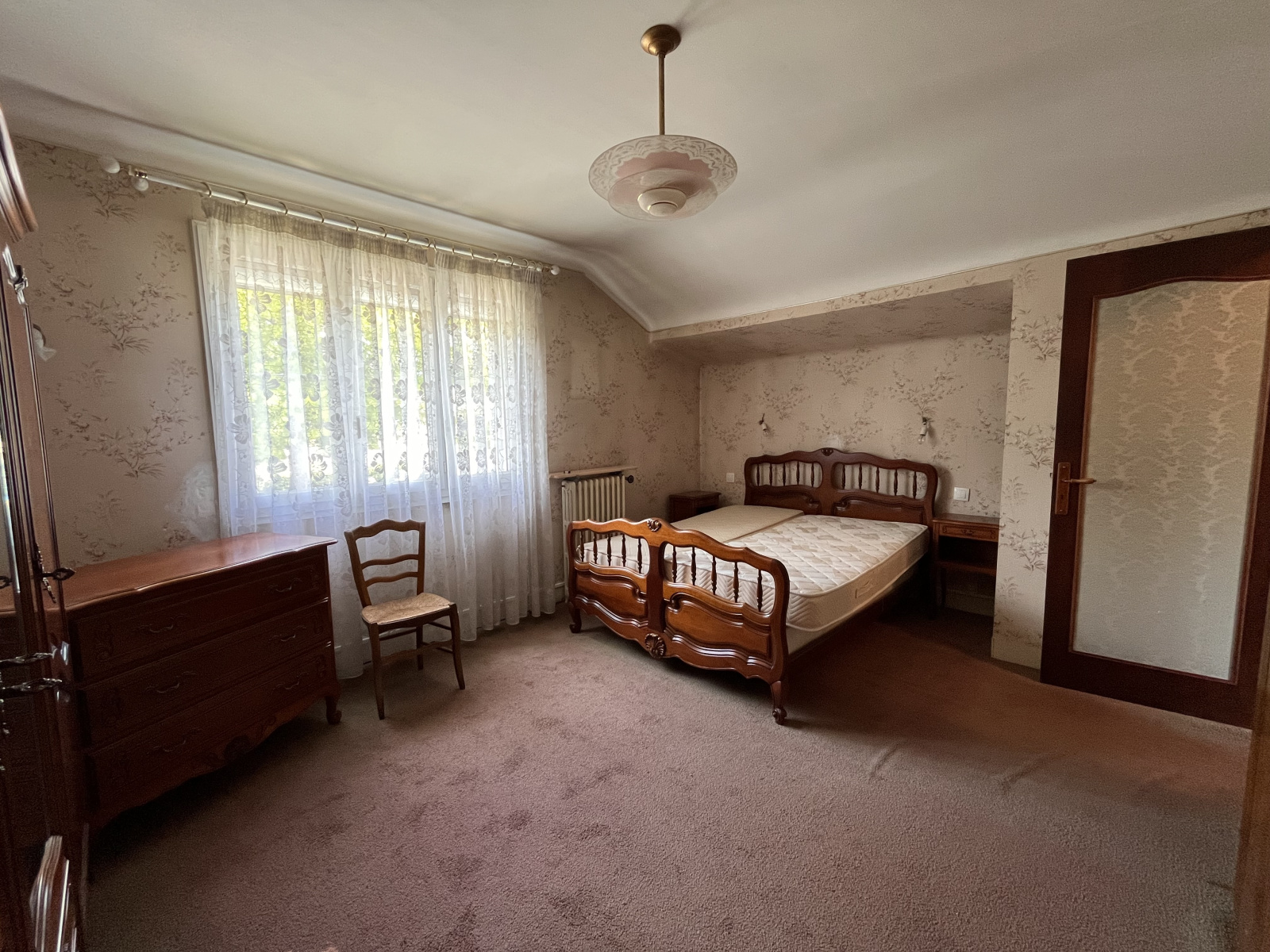 À l'étage : palier-dégagement, trois chambres, WC, grenier.